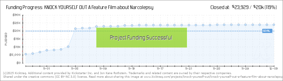 In 72 hours, you've gotten Knock Yourself Out 38% of our $20,000 goal! Thank you for jumping in early - it makes all the difference when crowdfunding. Thank you to those who pledged with no reward as well, we're equally thrilled that you supported... (Read More)
