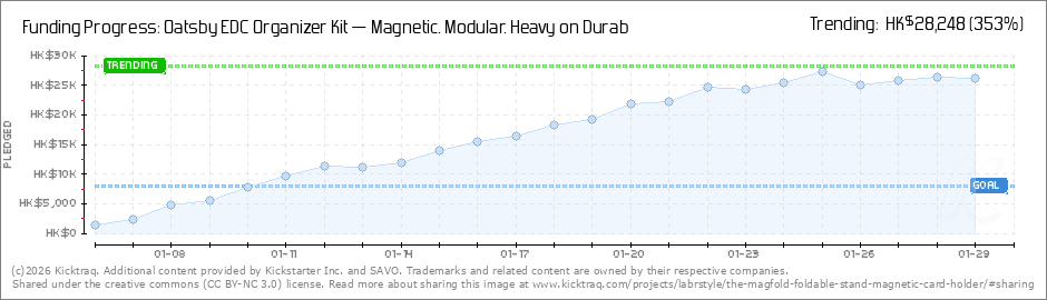 Help your backers reach your daily goals and help others see how you're doing. It's easy, with Kicktraq Mini.Here are a few quick snippits of code you can use to embed your personalized widget on your website, in your blog, and even on your favorite forum.