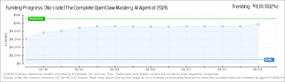Help your backers reach your daily goals and help others see how you're doing. It's easy, with Kicktraq Mini.Here are a few quick snippits of code you can use to embed your personalized widget on your website, in your blog, and even on your favorite forum.
