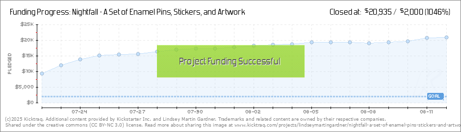 Hi everyone! Wow!! I am absolutely thrilled at the support this collection has received! Thank you!! We also earned a "Project we love" badge from Kickstarter, which is super exciting! I am really looking forward to seeing these pins in person, and... (Read More)