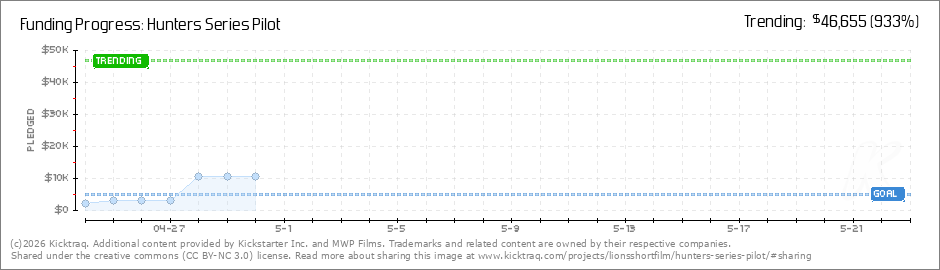 We hit our original goal with a few weeks left to go! Thanks to everyone who's backed so far! Everything else goes directly to improving production and post-production! (Read More)