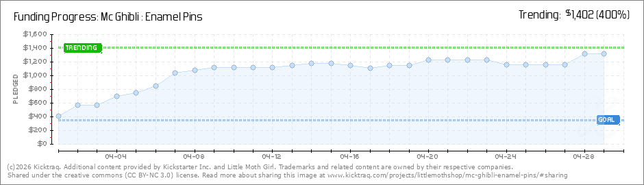 Help your backers reach your daily goals and help others see how you're doing. It's easy, with Kicktraq Mini.Here are a few quick snippits of code you can use to embed your personalized widget on your website, in your blog, and even on your favorite forum.