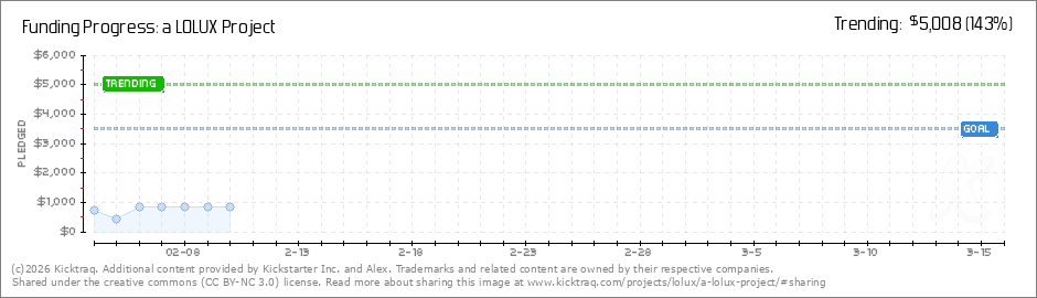Help your backers reach your daily goals and help others see how you're doing. It's easy, with Kicktraq Mini.Here are a few quick snippits of code you can use to embed your personalized widget on your website, in your blog, and even on your favorite forum.