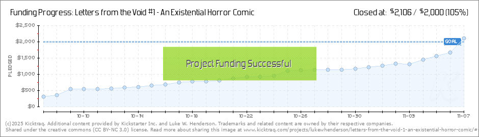 Hello Vessels of the Void! We’re freaking funded! Thank you all so much for making this happen. There’s only 11 hours left, but I’m still going to announce our first stretch goal. If we hit $2250, I will be adding a four-page comic written by... (Read More)