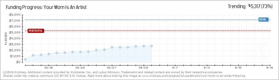 Help your backers reach your daily goals and help others see how you're doing. It's easy, with Kicktraq Mini.Here are a few quick snippits of code you can use to embed your personalized widget on your website, in your blog, and even on your favorite forum.