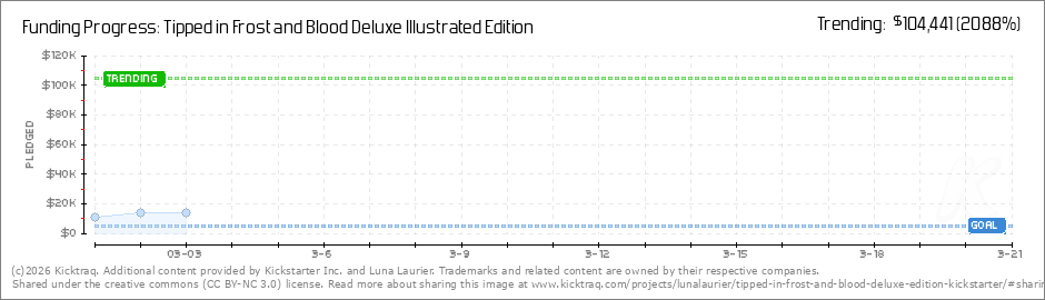 Help your backers reach your daily goals and help others see how you're doing. It's easy, with Kicktraq Mini.Here are a few quick snippits of code you can use to embed your personalized widget on your website, in your blog, and even on your favorite forum.
