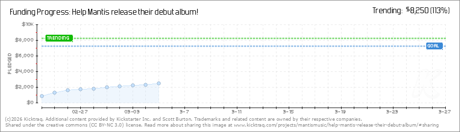 Help your backers reach your daily goals and help others see how you're doing. It's easy, with Kicktraq Mini.Here are a few quick snippits of code you can use to embed your personalized widget on your website, in your blog, and even on your favorite forum.