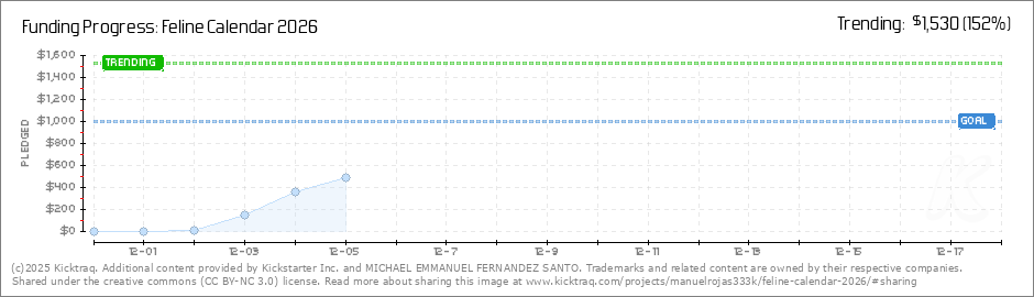 Help your backers reach your daily goals and help others see how you're doing. It's easy, with Kicktraq Mini.Here are a few quick snippits of code you can use to embed your personalized widget on your website, in your blog, and even on your favorite forum.