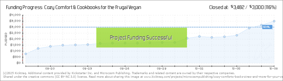 Hello, lovely backers! Welcome to the big ol' Comfy Cozy Vegan Cookbooks and More project! We're already over a third of the way to our goal, and there's still two and a half weeks to go! Thank you for getting us this far, so quickly. Every penny... (Read More)