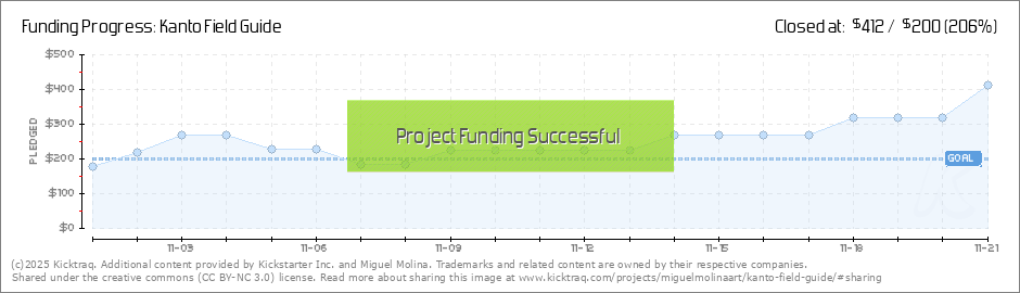 Help your backers reach your daily goals and help others see how you're doing. It's easy, with Kicktraq Mini.Here are a few quick snippits of code you can use to embed your personalized widget on your website, in your blog, and even on your favorite forum.