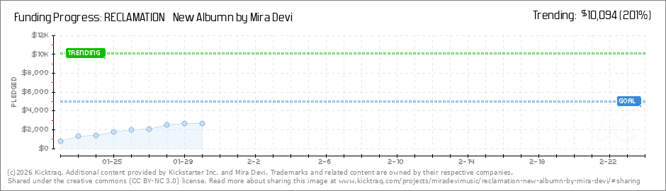 Help your backers reach your daily goals and help others see how you're doing. It's easy, with Kicktraq Mini.Here are a few quick snippits of code you can use to embed your personalized widget on your website, in your blog, and even on your favorite forum.