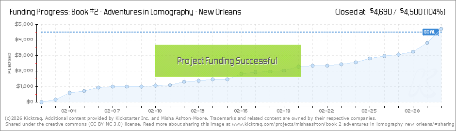 We are 63% to our goal, with 4 days left till the finish. For those of you who have already backed, thank you so much. This book is going to be bigger and better than the first. Speaking of the first book, Adventures in Lomography - New York, if you... (Read More)
