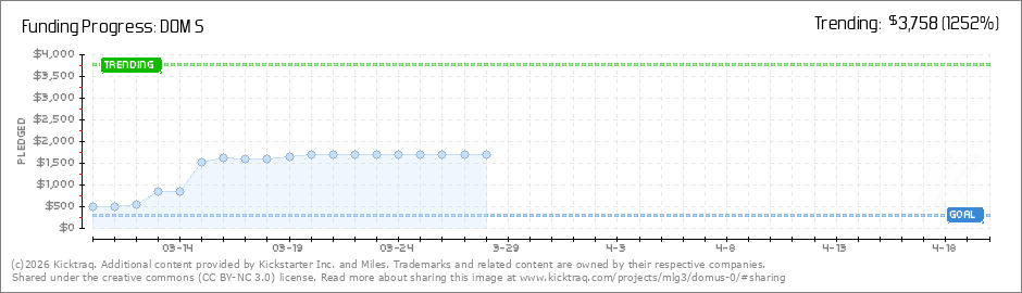 Help your backers reach your daily goals and help others see how you're doing. It's easy, with Kicktraq Mini.Here are a few quick snippits of code you can use to embed your personalized widget on your website, in your blog, and even on your favorite forum.