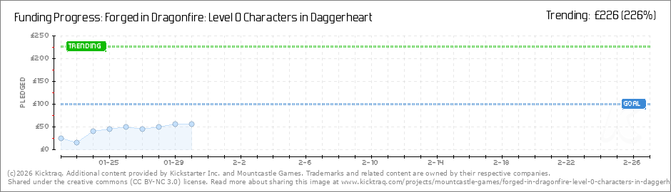 Help your backers reach your daily goals and help others see how you're doing. It's easy, with Kicktraq Mini.Here are a few quick snippits of code you can use to embed your personalized widget on your website, in your blog, and even on your favorite forum.