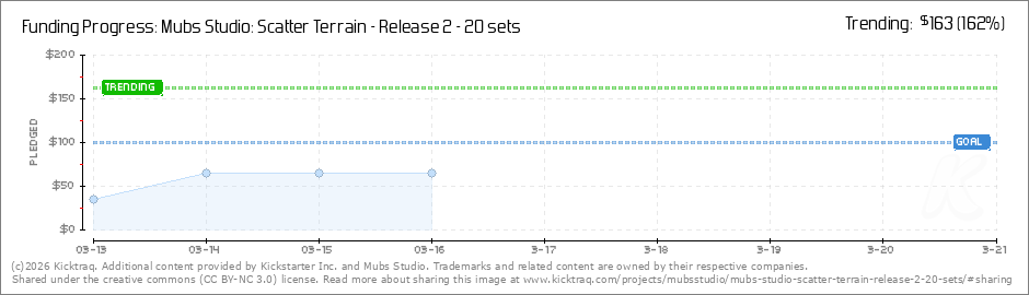 Help your backers reach your daily goals and help others see how you're doing. It's easy, with Kicktraq Mini.Here are a few quick snippits of code you can use to embed your personalized widget on your website, in your blog, and even on your favorite forum.