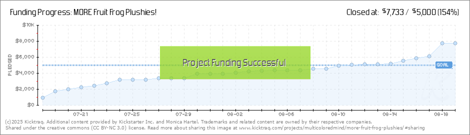 Help your backers reach your daily goals and help others see how you're doing. It's easy, with Kicktraq Mini.Here are a few quick snippits of code you can use to embed your personalized widget on your website, in your blog, and even on your favorite forum.