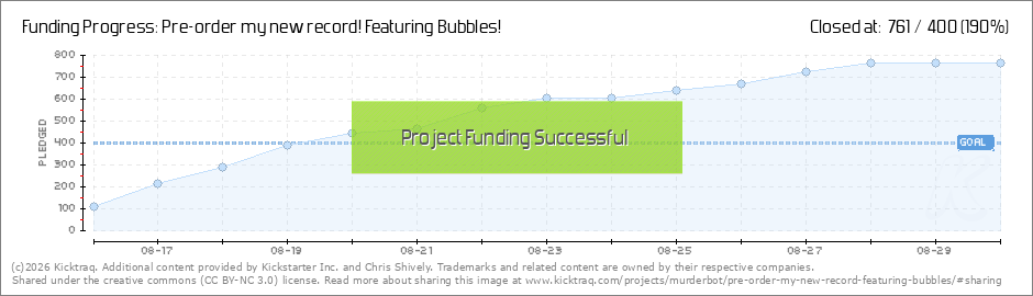 Help your backers reach your daily goals and help others see how you're doing. It's easy, with Kicktraq Mini.Here are a few quick snippits of code you can use to embed your personalized widget on your website, in your blog, and even on your favorite forum.