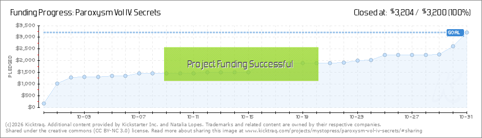 Hello everyone, I'd like to thank all of you for your support of our latest volume of Paroxysm. We are two-thirds of the way to our funding goal, and two-thirds of the way done with our Kickstarter campaign! Which is a good time to announce that we... (Read More)