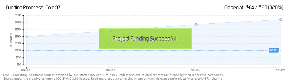Help your backers reach your daily goals and help others see how you're doing. It's easy, with Kicktraq Mini.Here are a few quick snippits of code you can use to embed your personalized widget on your website, in your blog, and even on your favorite forum.