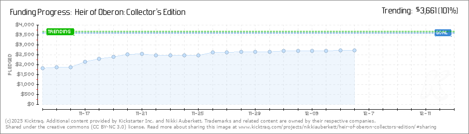Help your backers reach your daily goals and help others see how you're doing. It's easy, with Kicktraq Mini.Here are a few quick snippits of code you can use to embed your personalized widget on your website, in your blog, and even on your favorite forum.