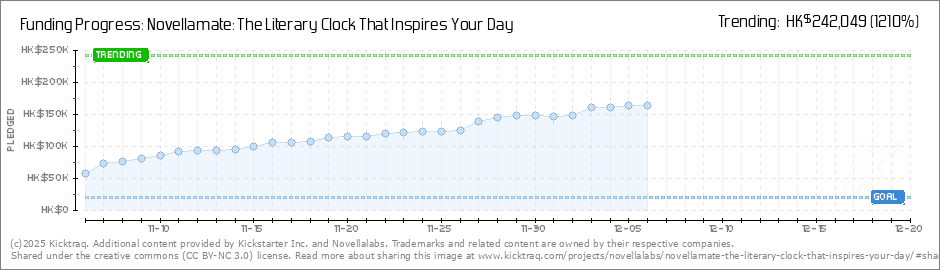 Help your backers reach your daily goals and help others see how you're doing. It's easy, with Kicktraq Mini.Here are a few quick snippits of code you can use to embed your personalized widget on your website, in your blog, and even on your favorite forum.
