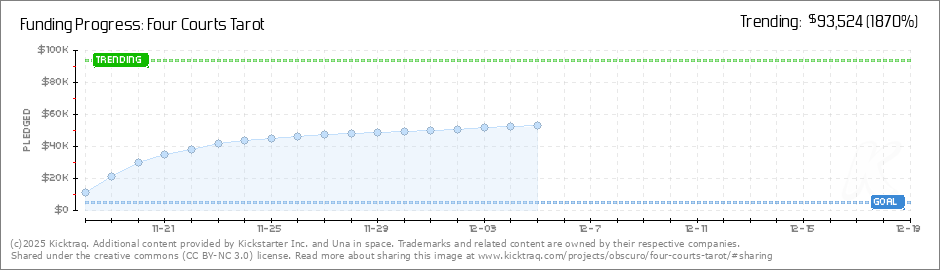 Hi everyone, What an incredible first day. Thanks to your support, Four Courts Tarot has reached 300% funding and passed $15,000 in less than 24 hours. I’m deeply grateful to each of you who joined the campaign, shared it, or simply followed the... (Read More)