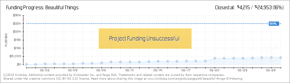 Help your backers reach your daily goals and help others see how you're doing. It's easy, with Kicktraq Mini.Here are a few quick snippits of code you can use to embed your personalized widget on your website, in your blog, and even on your favorite forum.