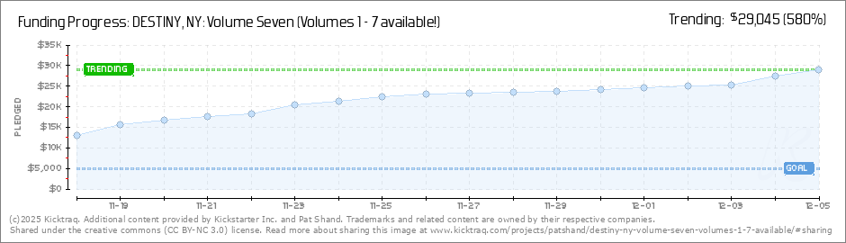 Destiny, NY backers, Thanks for a great first day! We have not only funded, but also hit our first Stretch Goal. This Stretch Goal unlocks a new Destiny, NY TCG card for everyone. The card is 09/36 in our Blue Visions set and features Sonny Feretti... (Read More)