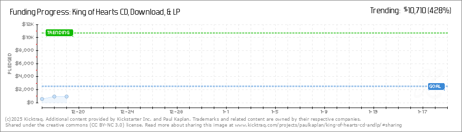 Help your backers reach your daily goals and help others see how you're doing. It's easy, with Kicktraq Mini.Here are a few quick snippits of code you can use to embed your personalized widget on your website, in your blog, and even on your favorite forum.