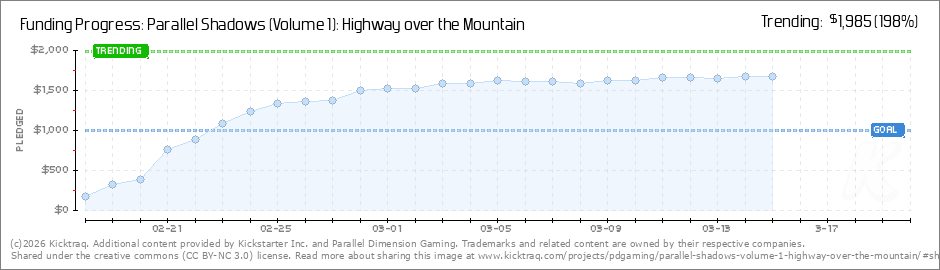 Hi all,Jeff here from Parallel Dimension Gaming, and I wanted to thank you all for helping us get this Kickstarter launched so far. We've got a bit to go yet, but we're definitely happy to already see gamers supporting our new company and this first... (Read More)