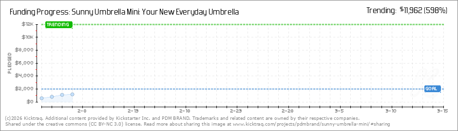 Help your backers reach your daily goals and help others see how you're doing. It's easy, with Kicktraq Mini.Here are a few quick snippits of code you can use to embed your personalized widget on your website, in your blog, and even on your favorite forum.
