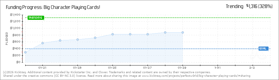 Help your backers reach your daily goals and help others see how you're doing. It's easy, with Kicktraq Mini.Here are a few quick snippits of code you can use to embed your personalized widget on your website, in your blog, and even on your favorite forum.