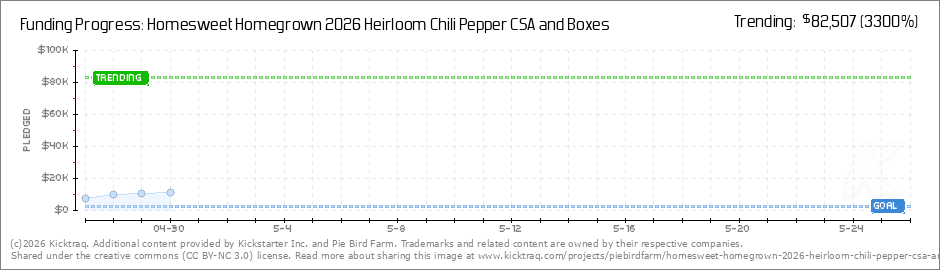 THANK YOU ALL SO MUCH! We did it again - we made our initial campaign goal of $,2500! Now, we need to keep spreading that hot chili pepper goodness by getting our Chili Pepper CSAs out to even more people. Can we make our stretch goal of $15,000 by... (Read More)
