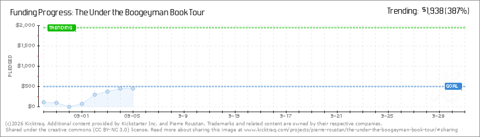 Help your backers reach your daily goals and help others see how you're doing. It's easy, with Kicktraq Mini.Here are a few quick snippits of code you can use to embed your personalized widget on your website, in your blog, and even on your favorite forum.