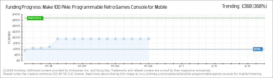 Help your backers reach your daily goals and help others see how you're doing. It's easy, with Kicktraq Mini.Here are a few quick snippits of code you can use to embed your personalized widget on your website, in your blog, and even on your favorite forum.