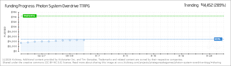 Help your backers reach your daily goals and help others see how you're doing. It's easy, with Kicktraq Mini.Here are a few quick snippits of code you can use to embed your personalized widget on your website, in your blog, and even on your favorite forum.