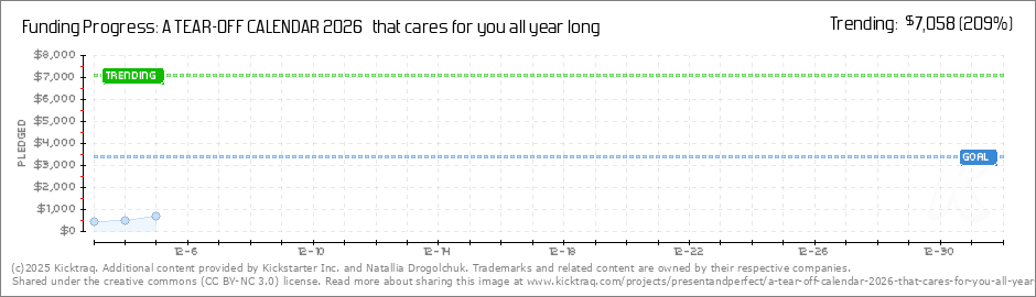 Help your backers reach your daily goals and help others see how you're doing. It's easy, with Kicktraq Mini.Here are a few quick snippits of code you can use to embed your personalized widget on your website, in your blog, and even on your favorite forum.