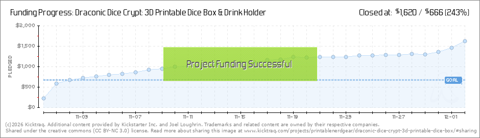 Hi everyone, thanks for your support and for backing the Draconic Dice Crypt! I’m happy to report that at 6 hours into the launch we’re just over half way to reaching our fully funded goal of $666. Let’s crush that goal and head onward to the... (Read More)