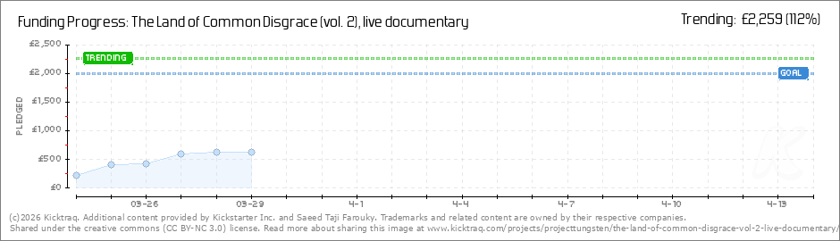 Help your backers reach your daily goals and help others see how you're doing. It's easy, with Kicktraq Mini.Here are a few quick snippits of code you can use to embed your personalized widget on your website, in your blog, and even on your favorite forum.