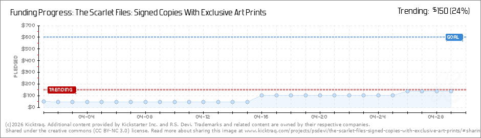 Help your backers reach your daily goals and help others see how you're doing. It's easy, with Kicktraq Mini.Here are a few quick snippits of code you can use to embed your personalized widget on your website, in your blog, and even on your favorite forum.