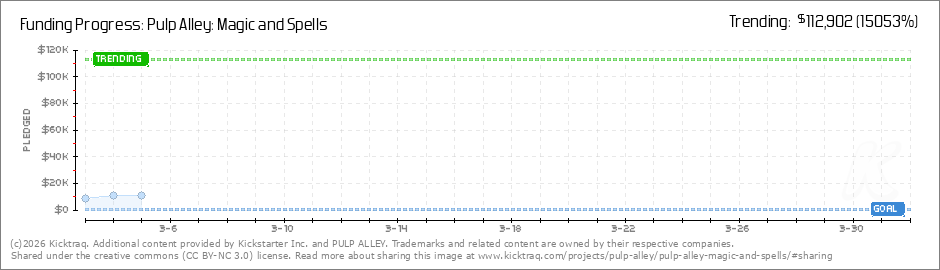 Wow! We just crossed the $10k threshold — and unlocked another FREE Stretch Goal! 15% DISCOUNTFor a limited time, we’re offering a 15% discount in the Pulp Alley online store ( www.pulpalley.com) on orders over $50 when you use the code MAGIC.... (Read More)