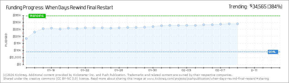 Help your backers reach your daily goals and help others see how you're doing. It's easy, with Kicktraq Mini.Here are a few quick snippits of code you can use to embed your personalized widget on your website, in your blog, and even on your favorite forum.