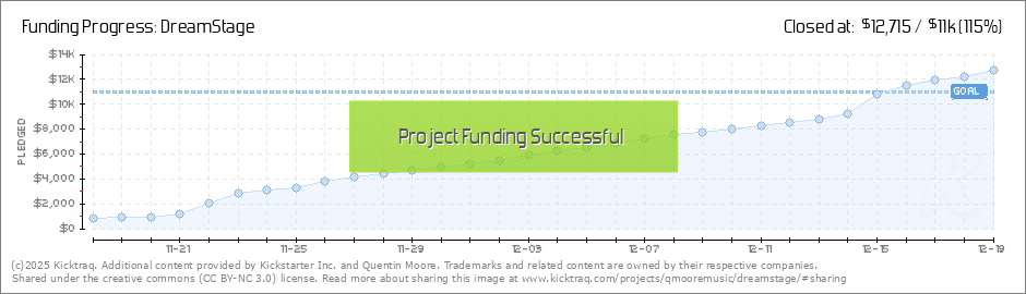 Hey folks! First I wanted thank you for pledging your support to DreamStage! It means a lot to me! I also want to remind everyone that the project is ALL OR NOTHING, meaning that we dont get any of the funds unless we reach our full goal of... (Read More)
