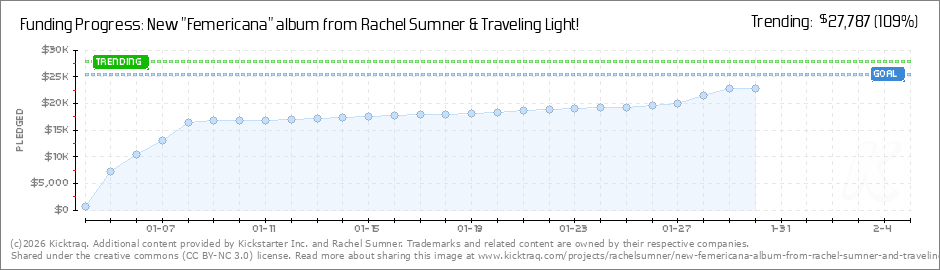 Help your backers reach your daily goals and help others see how you're doing. It's easy, with Kicktraq Mini.Here are a few quick snippits of code you can use to embed your personalized widget on your website, in your blog, and even on your favorite forum.