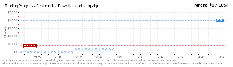 Help your backers reach your daily goals and help others see how you're doing. It's easy, with Kicktraq Mini.Here are a few quick snippits of code you can use to embed your personalized widget on your website, in your blog, and even on your favorite forum.