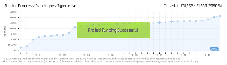 TYPERACTIVE has almost reached £24,000 just half way through the funding period, which is both unexpected and very gratifying. I seriously thought they'd only be a few type aficionados out there who'd want a big fat catalogue, but here we are –... (Read More)
