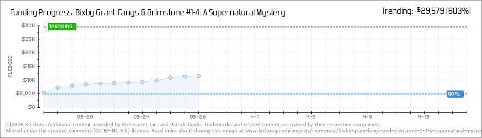 Greetings, Mummy Chums!THIS CAMPAIGN IS POPPIN'.Bixby Grant: Fangs & Brimstone #1-4 Kickstarter campaign is ONE MONTH OUT, and currently sitting at 602 folks who clicked “Notify me on launch”. For comparison, the last campaign had 125... (Read More)