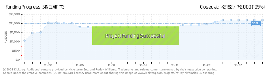 Wow, what a fantastic first (and a bit) day!! We're two thirds funded already, and we're just getting started! We may not have the biggest audience for SINCLAIR, but we certainly have the best. Thanks all, Roddy (Read More)