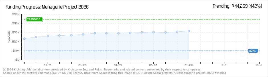 Help your backers reach your daily goals and help others see how you're doing. It's easy, with Kicktraq Mini.Here are a few quick snippits of code you can use to embed your personalized widget on your website, in your blog, and even on your favorite forum.