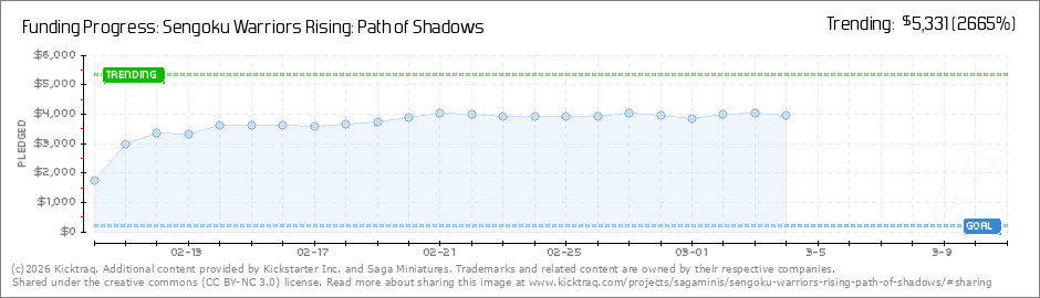 Help your backers reach your daily goals and help others see how you're doing. It's easy, with Kicktraq Mini.Here are a few quick snippits of code you can use to embed your personalized widget on your website, in your blog, and even on your favorite forum.